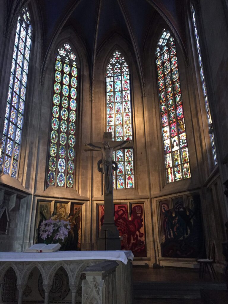 성모교회의 가장 큰 특징은 붉은 사암과 벽돌을 사용한 외관입니다. 화려한 장식보다 구조미가 돋보이며, 높이 솟은 첨탑과 정교한 아치형 창문이 중세 고딕 건축의 긴장감을 그대로 전합니다.